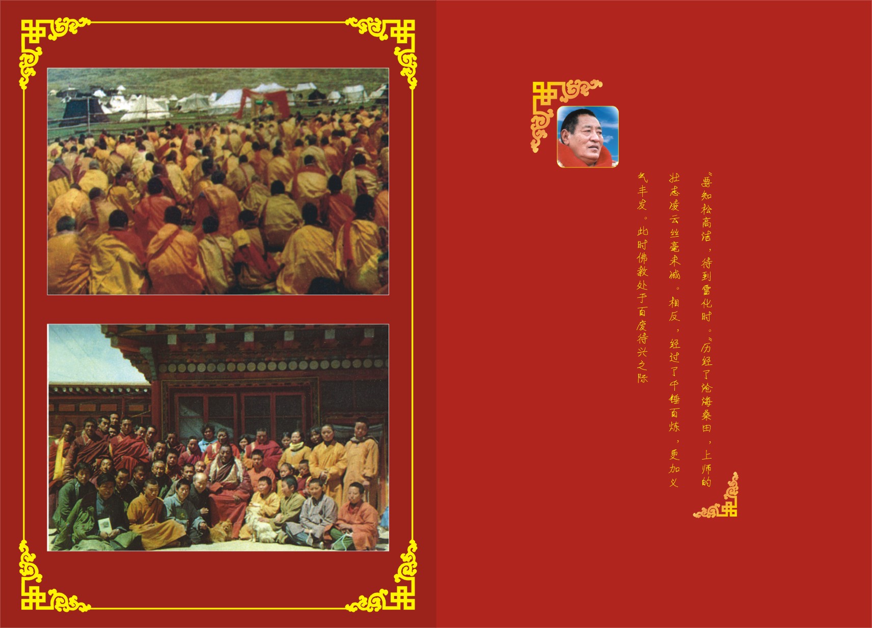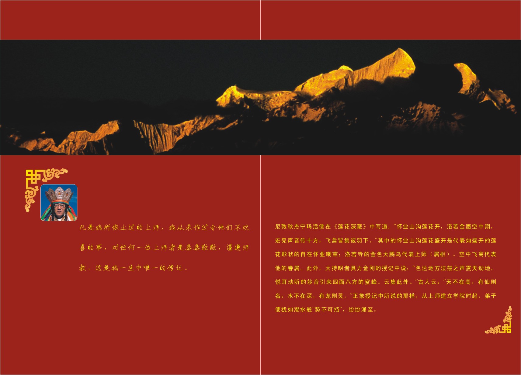 尼敦秋杰宁玛活佛在《莲花深藏》中写道:“怀业山沟莲花开,洛若金鹰空中翔,宏亮声音传十方,飞禽皆集彼羽下。”其中的怀业山沟莲花盛开是代表如盛开的莲花形状的自在怀业喇荣:洛若寺的金色大鹏鸟代表上师(属相)。空中飞禽代表他的眷属。此外,大持明者具力金刚的授记中说:“色达地方法鼓之声震天动地,悦耳动听的妙音引来四面八方的蜜蜂。”